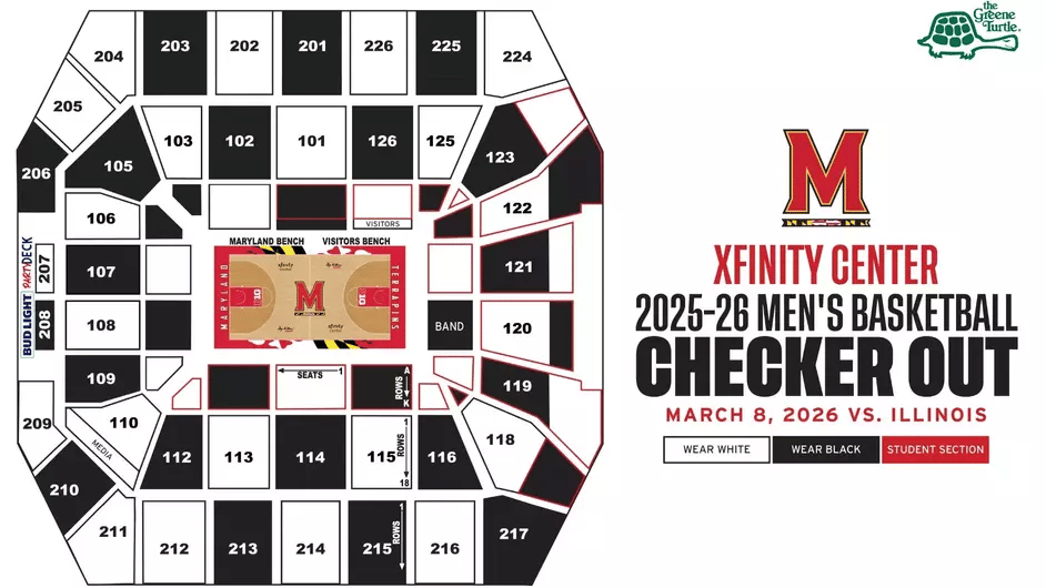 One last run at XFINITY Center. Maryland vs. Illinois. Sunday, March 8 at 3 p.m. Be there to Checker XFINITY!